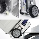 XSTO CT105 es un carrito sube escaleras eléctrico con ruedas y orugas diseñado para transportar cargas hasta 105 kg, ideal para subir y bajar escaleras con pesos.