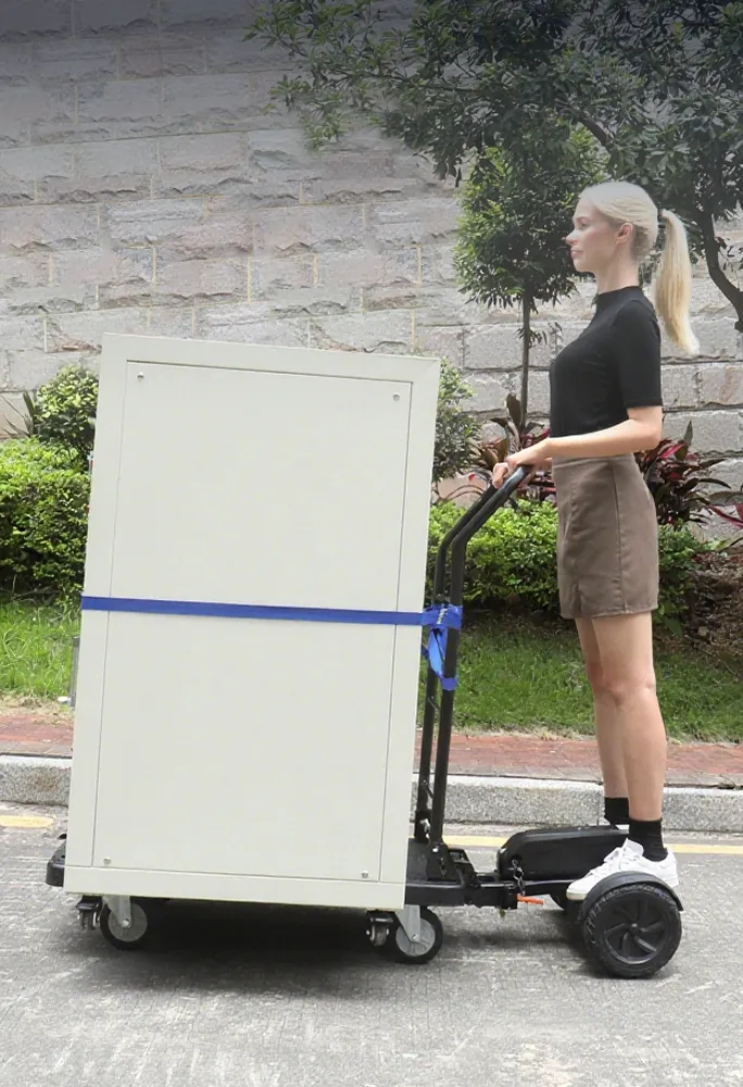 El ET300P2 es un carro de plataforma motorizada diseñado para facilitar el transporte de cargas pesadas en superficies planas y pendientes. Con una capacidad máxima de carga de 300 kg (incluido un operador de hasta 100 kg), este equipo es ideal para manejar instrumentos de precisión, electrodomésticos grandes, equipos de oficina, máquinas expendedoras, cajas fuertes y cajas de reparto, logística.